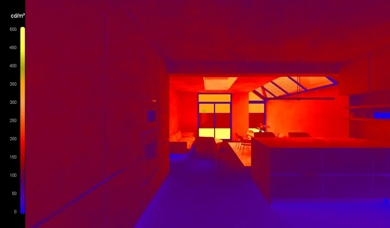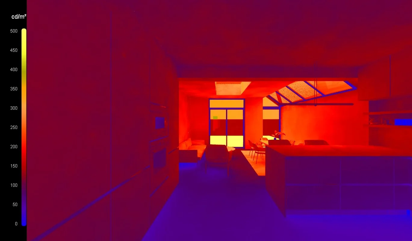 We also carried out daylight simulations, analysing how sunlight moves through the space during the day. These studies informed our artificial lighting plan, making sure the open plan kitchen, living and dining areas stay well-lit at any time, in any weather.